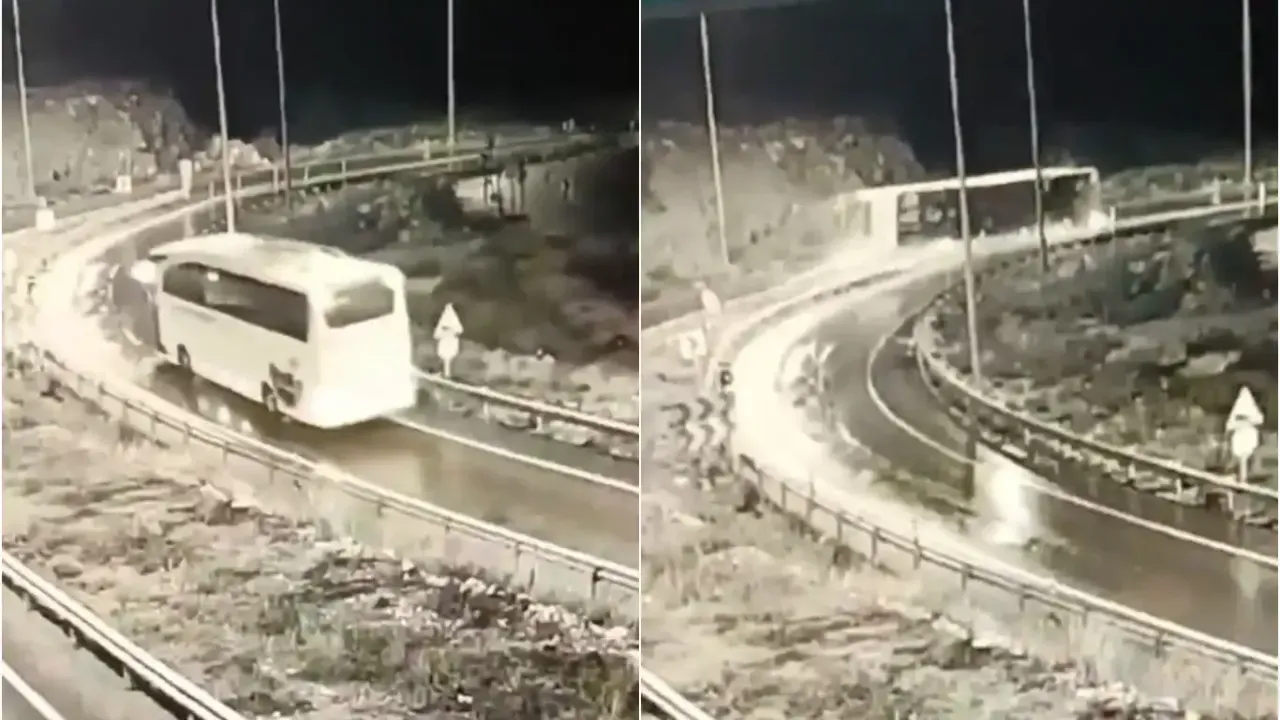 Hatay'dan Van'a giden yolcu otobüsü, kayganlaşan yolda sürücünün direksiyon hakimiyetini kaybetmesi sonucu devrildi.